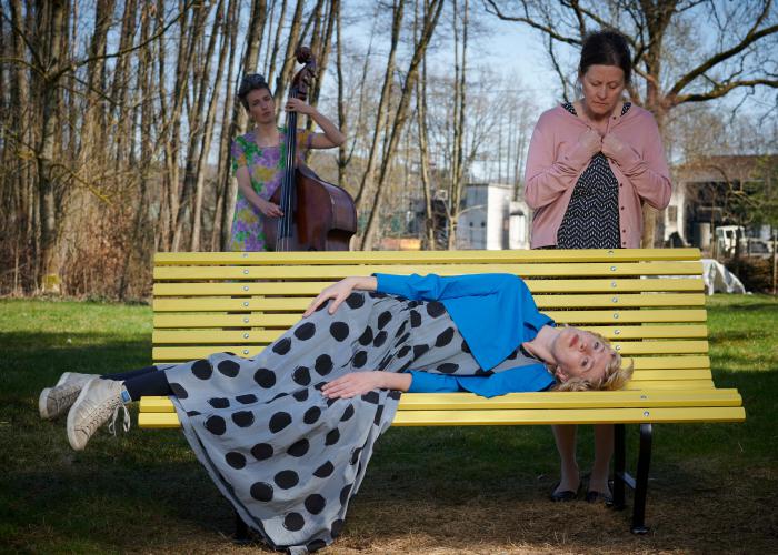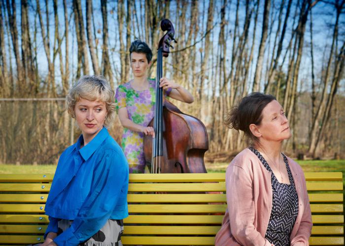 Ruth will vergessen. Meret ist auf der Suche. Die beiden Frauen treffen sich Tag für Tag auf einer Bank. Sie sitzen, sie schauen, sie reden. Still und verloren, dicht und konzentriert. Schicht für Schicht legen sie eine familiäre Schuld frei, begegnen ihrer Sehnsucht nach Nähe und der Angst, ihrer Verantwortung nicht gerecht zu werden. Die Musikerin Anna Trauffer mischt sich mit Kontrabass und Gesang in den Dialog der beiden Frauen ein, begleitet ihre Erinnerungen und Hoffnungen, macht Ungesagtes hörbar. DIE BANK von Beatrice Stebler verhandelt in einer starken Kunstsprache Nähe und Distanz. Die Autorin erhielt 2019 dafür vom Kanton Zürich einen Werkbeitrag.