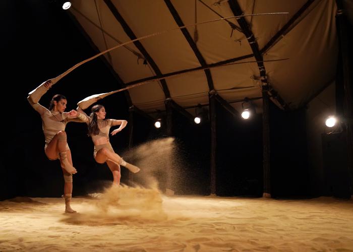 Sospiri sind 13 Szenen getanzt, gespielt, artistisch performt, dargestellt mit einer weissen Feder und 13 Palmblattrispen. Das Stück erzählt Episoden aus dem Leben. Drei junge Frauen suchen nach ihrem Platz auf dieser Welt – nach ihrer Bestimmung. Sie durchleben Erfahrungen von kindlich verspielt bis bedrohlich kraftvoll. Sie zeigen, wie sich Gleichgewicht überall wieder findet und wie nah Leichtigkeit und Schwere liegen können. Im dreizehnten und letzten Akt kommen schliesslich Feder und alle in den Szenen gesammelten Palmblattrispen zum Gesamteinsatz. Es entsteht ein sechs Meter grosses Mobile, die weltberühmte SANDDORNBALANCE und der Seufzer im Moment des Gelingens.